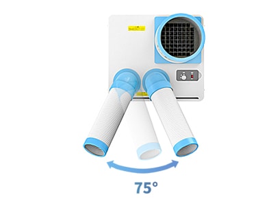 6、两个冷风口均可75度自动摆风,适用于3-5个岗位的降温