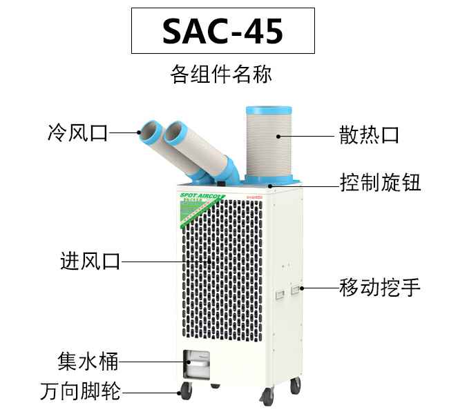 出风口可75°自动摆风,适用于3-5个岗位的降温。